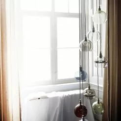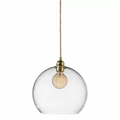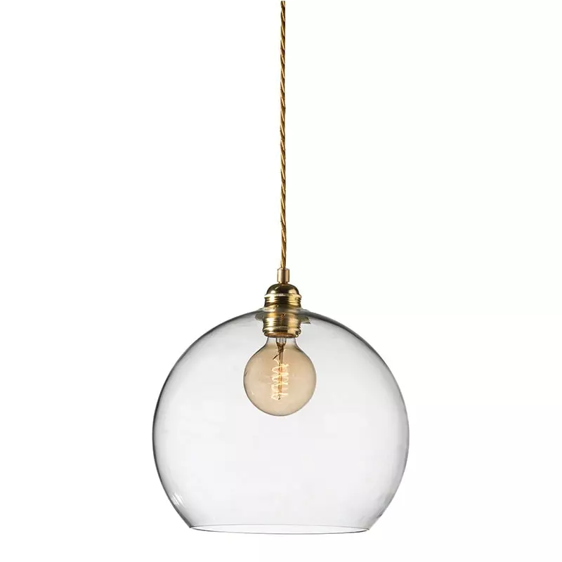 Rowan pendant from EBB & FLOW. The pendant is made of mouthblown glass and the combination of metal fittings and twisted wire makes Rowan become an unbeatable detail in your home. Rowan is wonderful in its simplicity but gets an extra lift if you hang several together. This lamp must be fitted by a qualifed electrician (contains earth wiring).