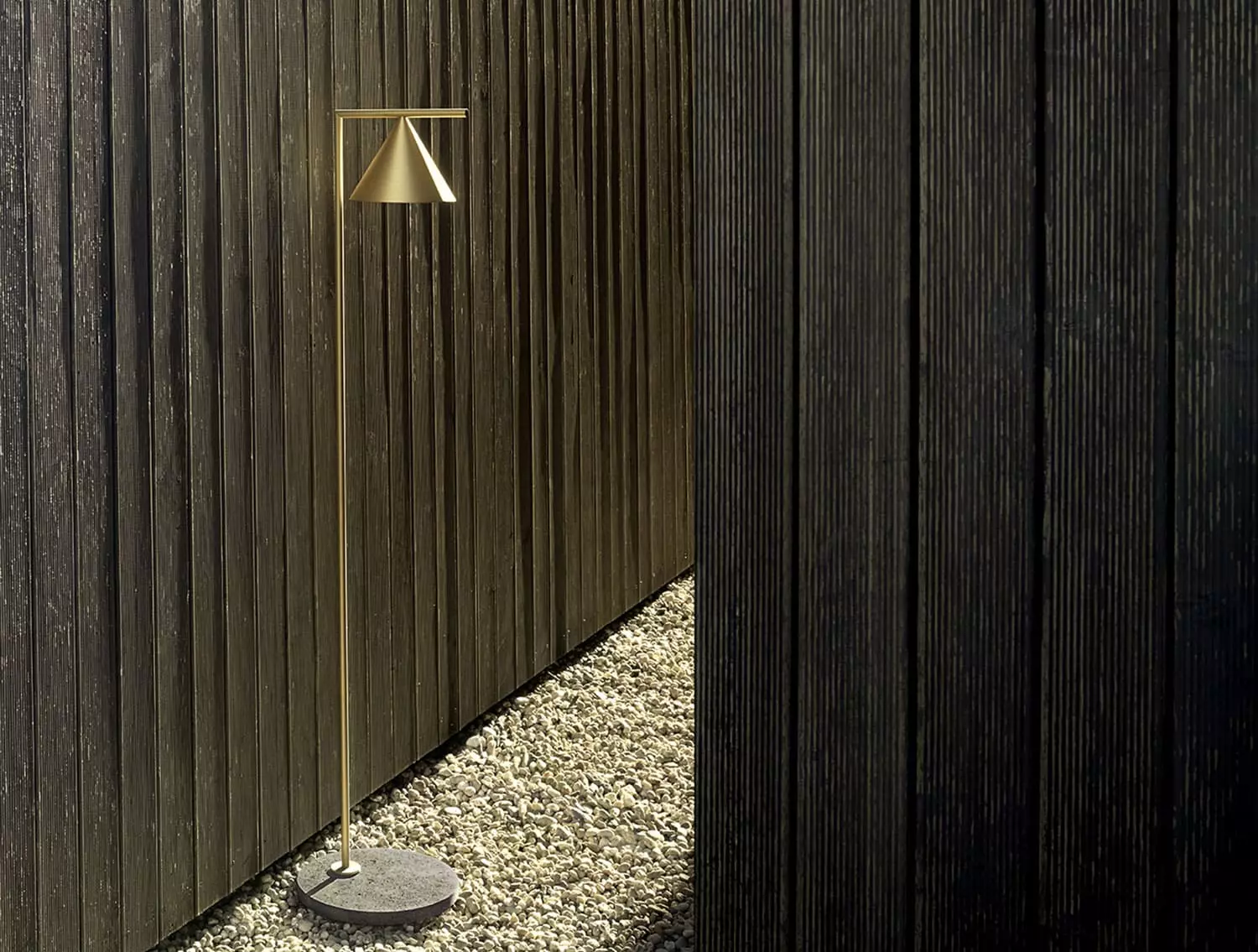 Captain Flint Outdoor from Flos is designed by Michael Anastassiades. The popular indoor lamp is now also available for outdoor use. Captain Flint has the same elegant look but has been chemically treated to be protected from harsh outdoor climates. The LED lamp is integrated and has an On/Off function on the cord, and is dimmable by 30-100%. Light up your patio, garden or house end with Captain Flint Outdoor for an extra luxurious and elegant feel even outdoors. The three different variants, Brass, Black, Stainless Steel and Deep Brown all comes with a predetermined solid base of stone.