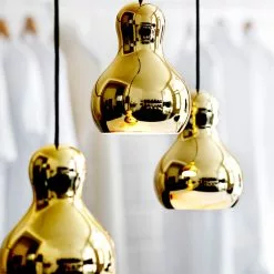 Calabash Pendant from Lightyears. Inspired by the classic gourd pump, the Calabash pendulum was created by the duo Boris Berlin and Poul Christiansen. In soft harmonic shapes and a gold finish it is irresistible to the conscious. The cable is black textile-clad, choose between three or six meters. Thanksgiving included.