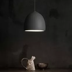 Suspence pendant P1 from Lightyears, designed 2013 by GamFrates. A versatile pendant suitable for any space, designed to translate movement into physical form. Same color of cord and shade ensures the lamp appears as one seamless whole. Diffuser incorporated to prevent glare and concentrate the light source to create an elegant optical illusion.