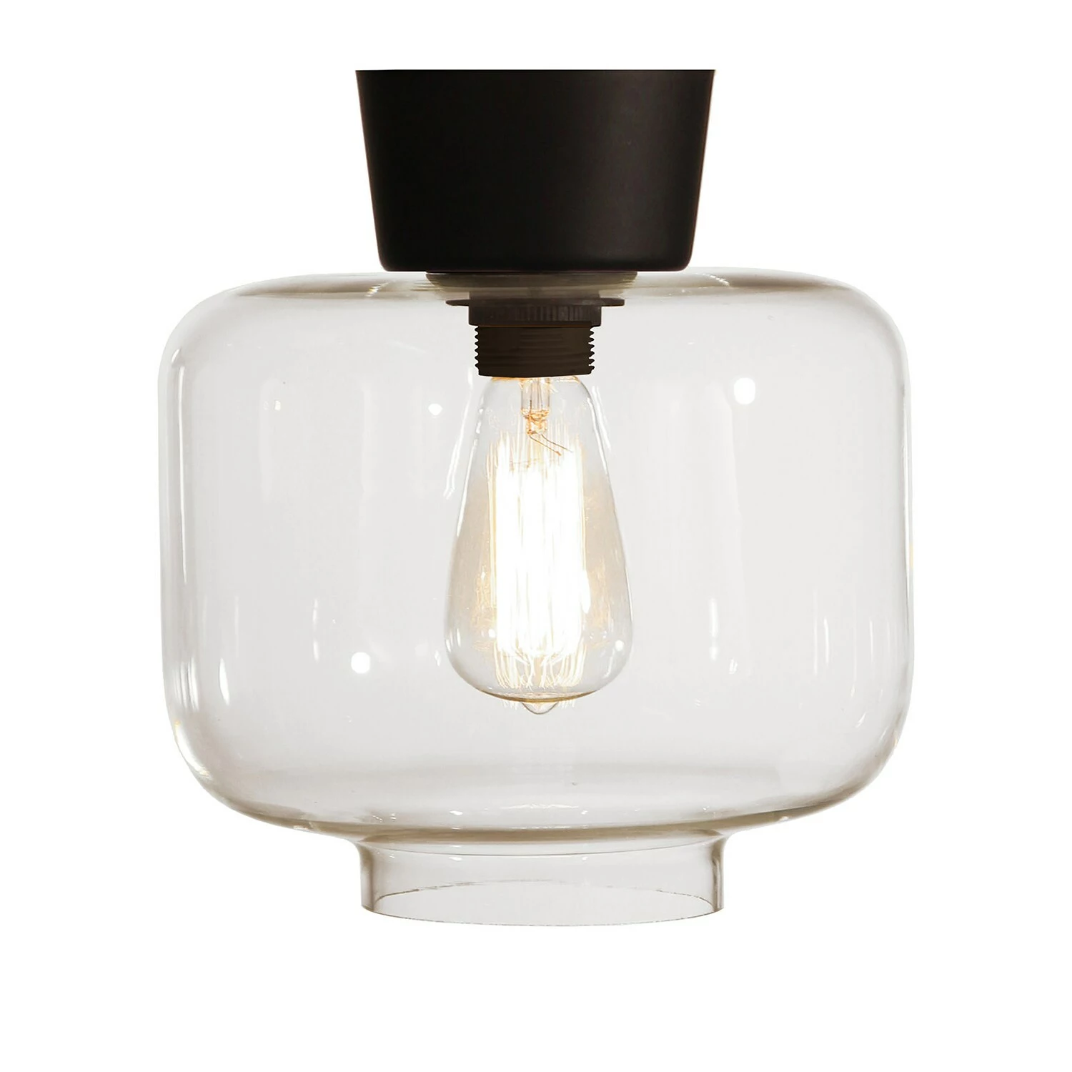 - Matt black casing gives clear glass globe.