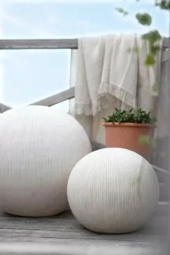 Sandhamn from Globen Lighting is a nature inspired floor lamp for outdoor use. With IP-class 44, it can withstand water splashes and also resist larger particles such as sand grains. With the ribbed pattern, it gives a pleasant shine to your patio.