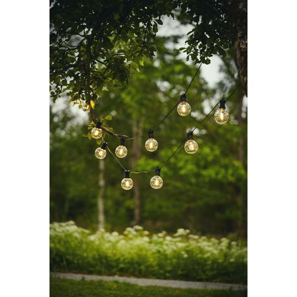 Valosarja Star Trading-tuotemerkiltä on ulkoaktiviteetteihin täydellisesti sopiva ja siinä on klassinen muotoilu kymmenellä LED-valonlähteellä ja puutarhan kodikkaan tunnelman luomiseen täydellisesti sopivilla pyöreillä koteloilla.