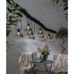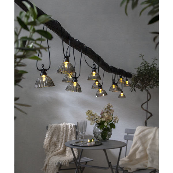 Valosarja Star Trading-tuotemerkiltä on ulkoaktiviteetteihin täydellisesti sopiva ja siinä on kaunis muotoilu kahdellatoista valonlähteellä ja puutarhan kodikkaan tunnelman luomiseen täydellisesti sopivilla uurteisilla lampunvarjostimilla.