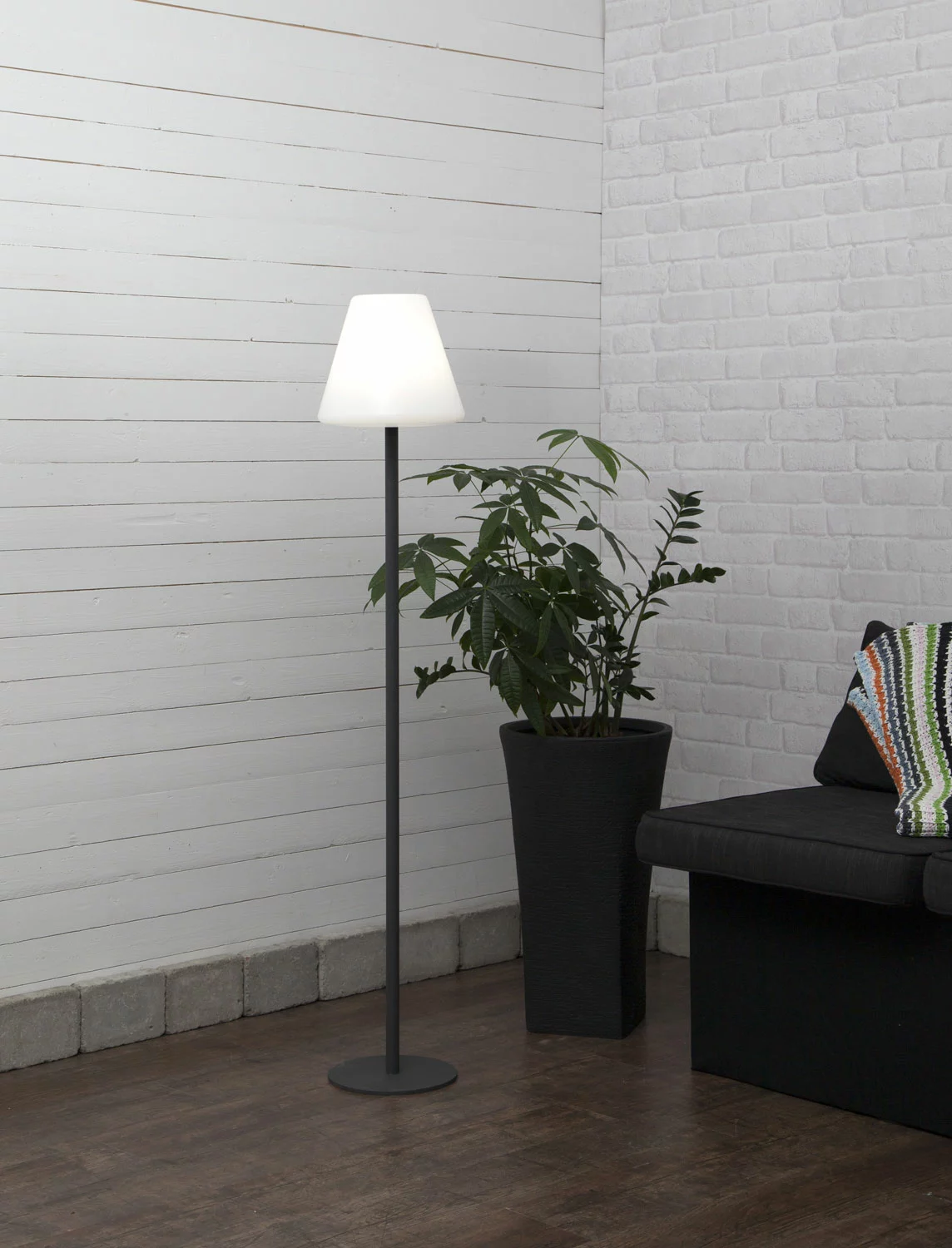 Kreta Floor Lamp becomes a nice addition to the balcony or patio. Adapted for outdoor environments and ideally suited as an extra light source when darkness falls. Create a nice atmosphere by choosing your preferred light source, E27 socket max 25W. Kreta gardenlight floor lamp is available in two sizes, but also as a smaller table lamp.