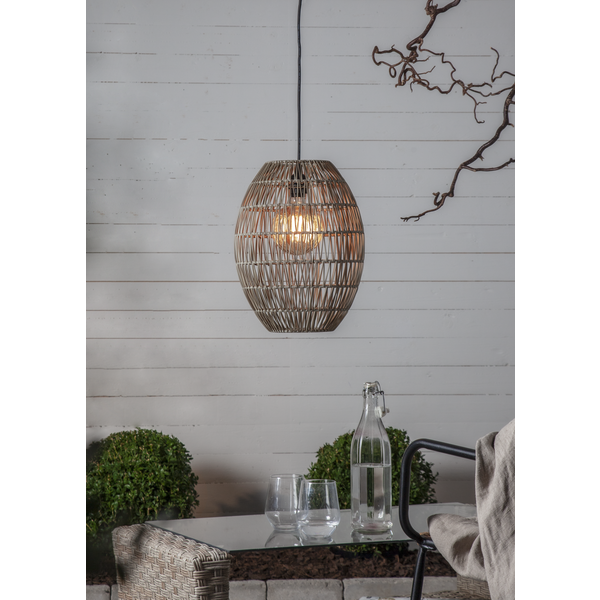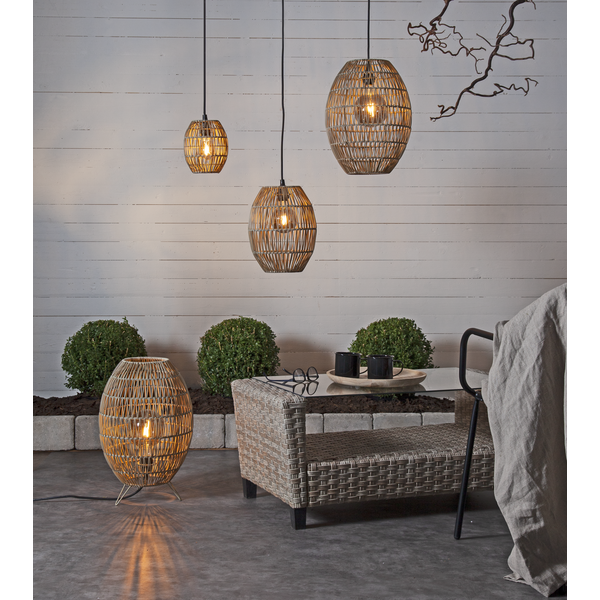 Linde is a lamp shade made of rattan to withstand outdoor environments. Hang up Linde lamp shade on the patio or terrace for a cozy feel. Select the desired outdoor suspension and light source depending on which light you prefer. The lamp shade is best suited for the E27 socket and with a light source less than 14 cm in diameter. Linde lamp shade is available in the two sizes 30 and 40 cm.