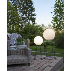 Lattiavalaisin Star Trading-tuotemerkiltä on ulkoaktiviteetteihin täydellisesti sopiva ja siinä on kaunis muotoilu mustalla lampunkannalla metallista ja kodikkaan kesäiltatunnelman luomiseen täydellisesti sopivalla pyöreällä lampunvarjostimella.