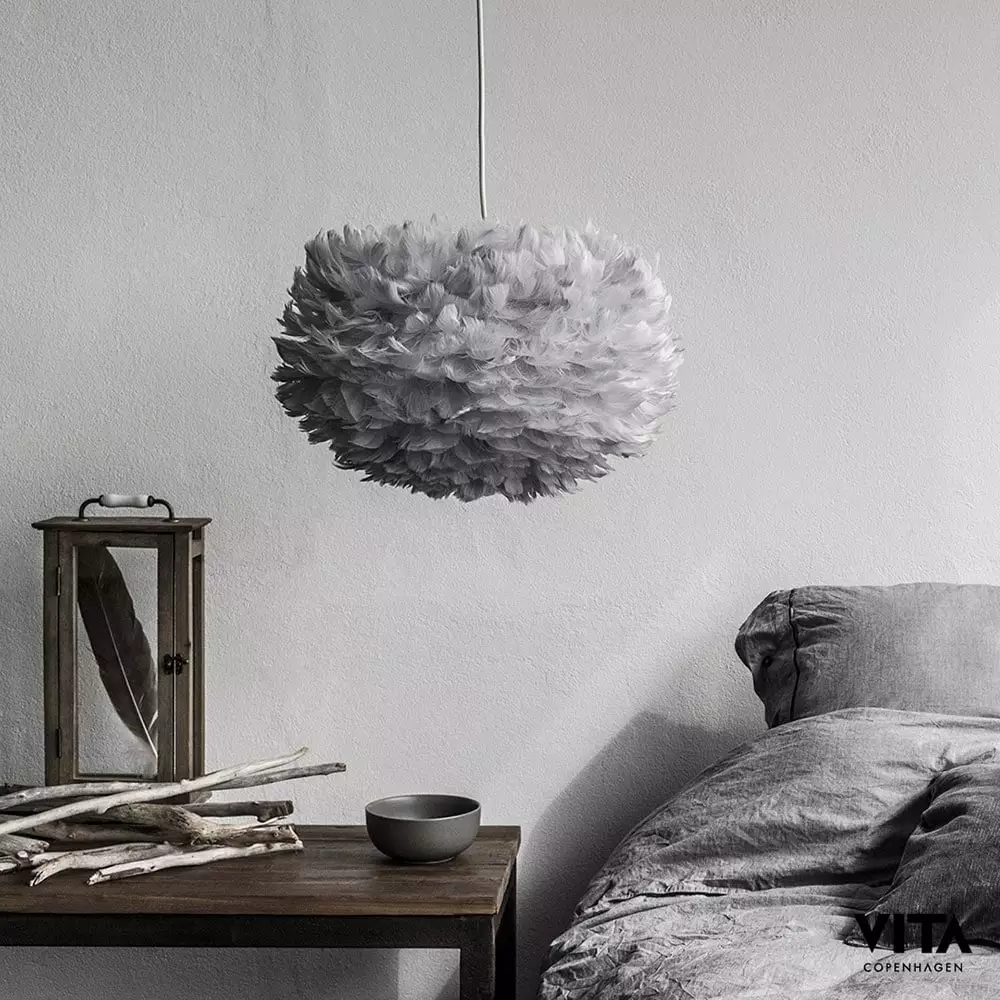 Käsinvalmistettu, ohut paperi ja kauniit valkeat hanhenhöyhenet tuovat varjostimelle sen tyylikkään, elegantin ilmeen. Valaistuna Eos tarjoaa pehmeän, hajanaisen ja lämpeän loisteen. Kaunis valo ja pyöreä, pöyheä muoto höyhenistä luovat harmoniaa huoneen ilmapiiriin.