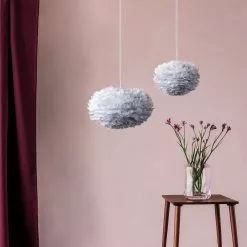 KÀsinvalmistettu, ohut paperi ja kauniit valkeat hanhenhöyhenet tuovat varjostimelle sen tyylikkÀÀn, elegantin ilmeen. Valaistuna Eos tarjoaa pehmeÀn, hajanaisen ja lÀmpeÀn loisteen. Kaunis valo ja pyöreÀ, pöyheÀ muoto höyhenistÀ luovat harmoniaa huoneen ilmapiiriin.