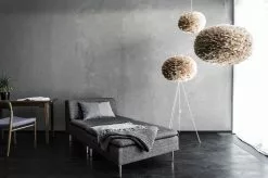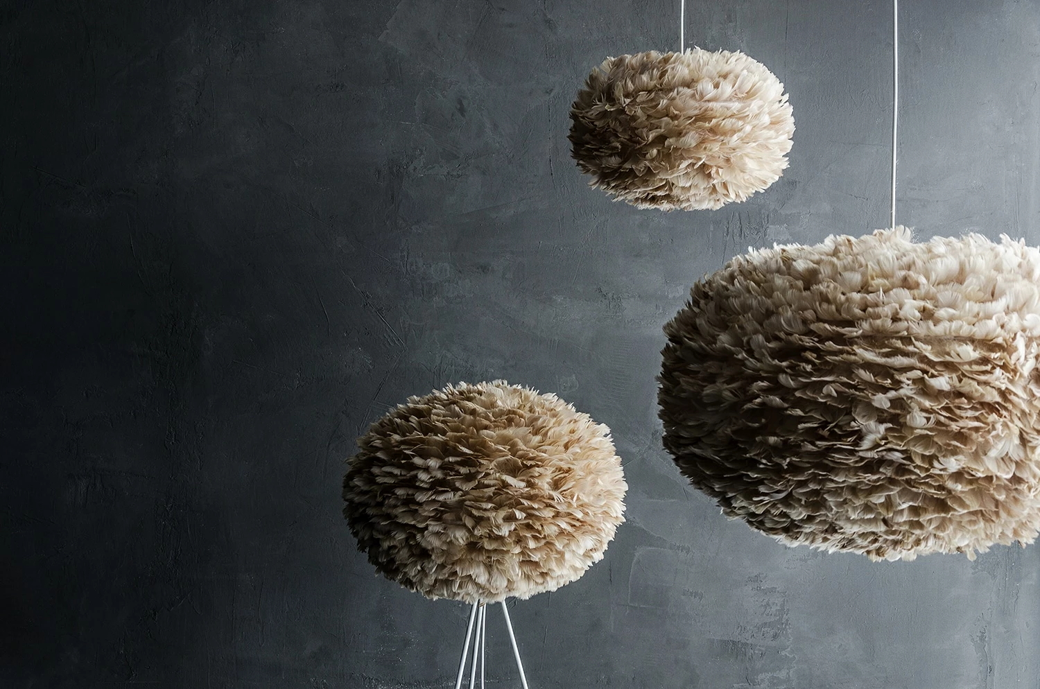 Käsinvalmistettu, ohut paperi ja kauniit valkeat hanhenhöyhenet tuovat varjostimelle sen tyylikkään, elegantin ilmeen. Valaistuna Eos tarjoaa pehmeän, hajanaisen ja lämpeän loisteen. Kaunis valo ja pyöreä, pöyheä muoto höyhenistä luovat harmoniaa huoneen ilmapiiriin.