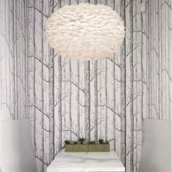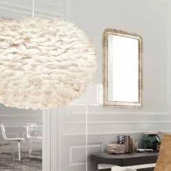 Käsinvalmistettu, ohut paperi ja kauniit valkeat hanhenhöyhenet tuovat varjostimelle sen tyylikkään, elegantin ilmeen. Valaistuna Eos tarjoaa pehmeän, hajanaisen ja lämpeän loisteen. Kaunis valo ja pyöreä, pöyheä muoto höyhenistä luovat harmoniaa huoneen ilmapiiriin.