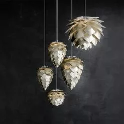 Tyylikäs valaisin on saatavana useassa eri koossa, ja mm. kuparin, teräksen ja kuparin upeissa sävyissä.