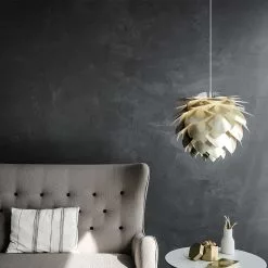 Tyylikäs valaisin on saatavana useassa eri koossa, ja mm. kuparin, teräksen ja kuparin upeissa sävyissä.