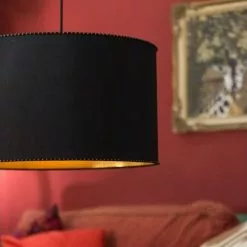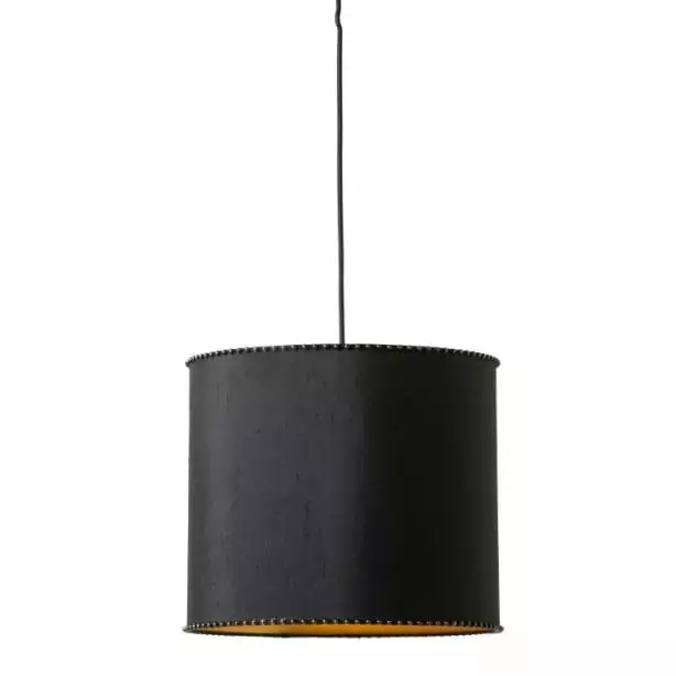 Rock’n’roll, Wild West glamour or sixties elegance? No, we can’t agree on the source of inspiration for the Nina lampshade series. Anyhow, they are cylindrical with a black outside in natural silk, and an inside golden lining. And the icing on the cake is a series of gold-coloured studs on the top and bottom. All Nina lampshades are reversible and can be used with ceiling lamps or table lamps