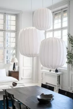 Prism is a beautiful ceiling pendant with an organic shape that takes height no matter in which room you place it. The lamp shade has a luxurious fabric and provides a soft and comfortable light. Prism is available in three different sizes.